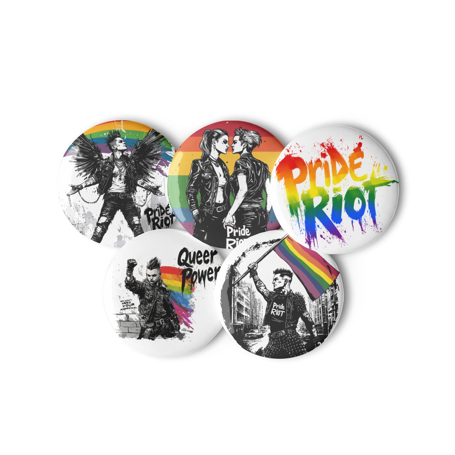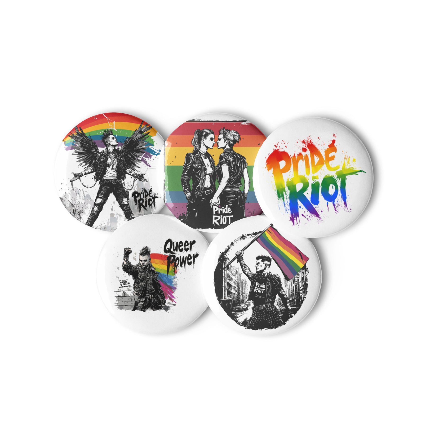Pride Riot Queer Pride Pin Buttons – Set of 5 LGBTQ+ Punk Protest Accessories | Pride Riot Flair Pack