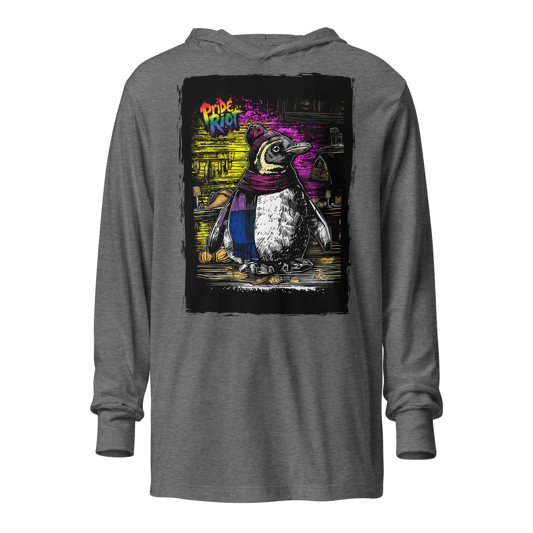 The Friendsgiving Penguin Hooded Long-Sleeve Tee keeps you warm, playful, and perfectly queer for the season of chosen family.