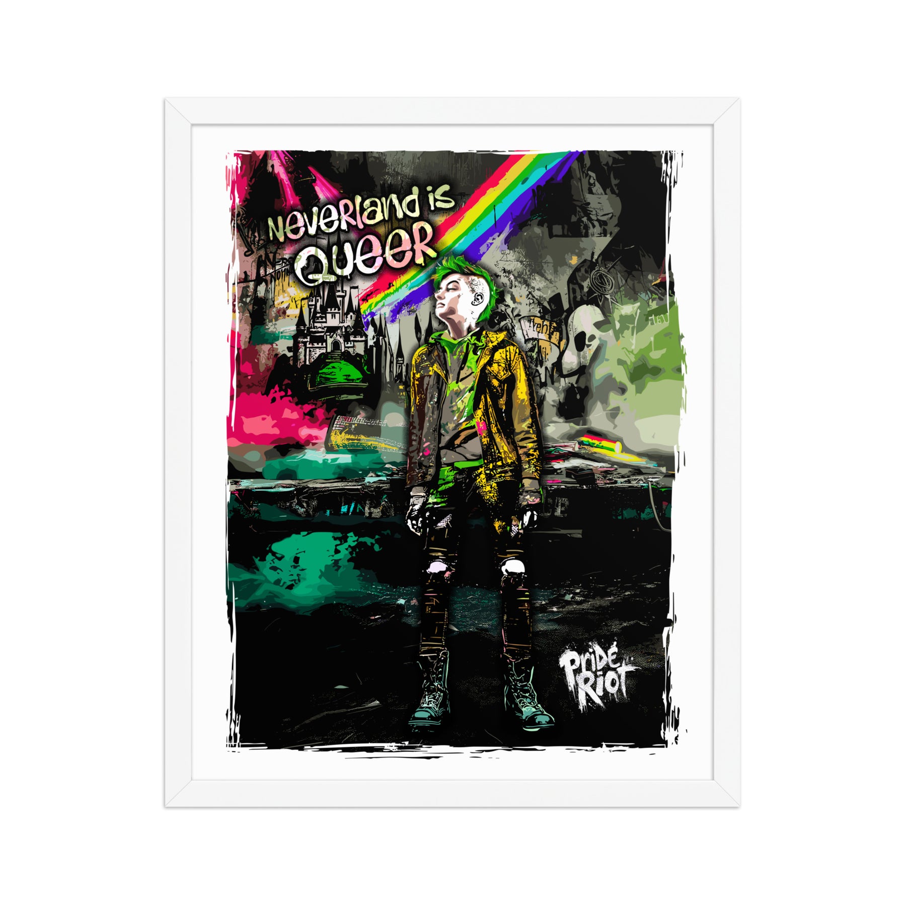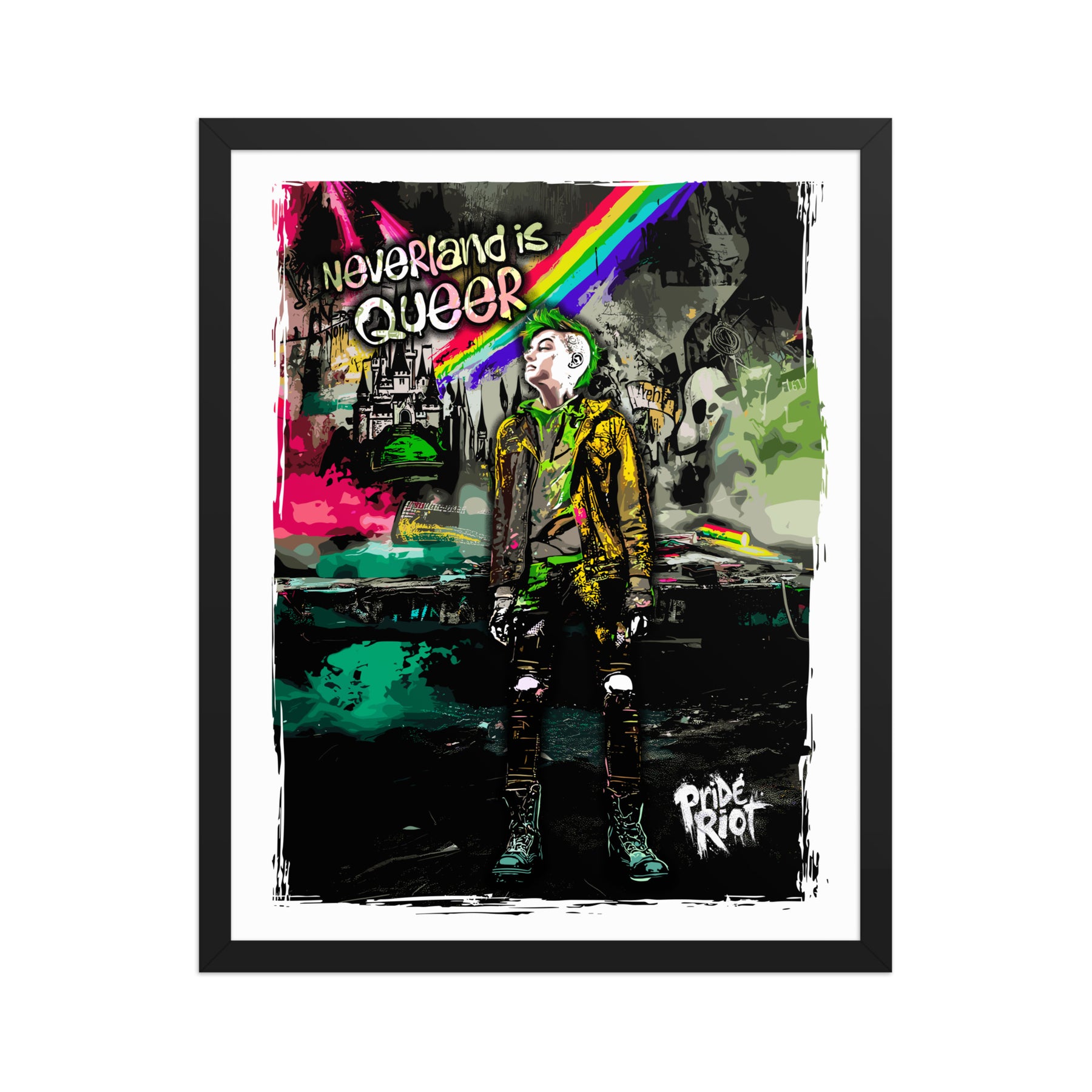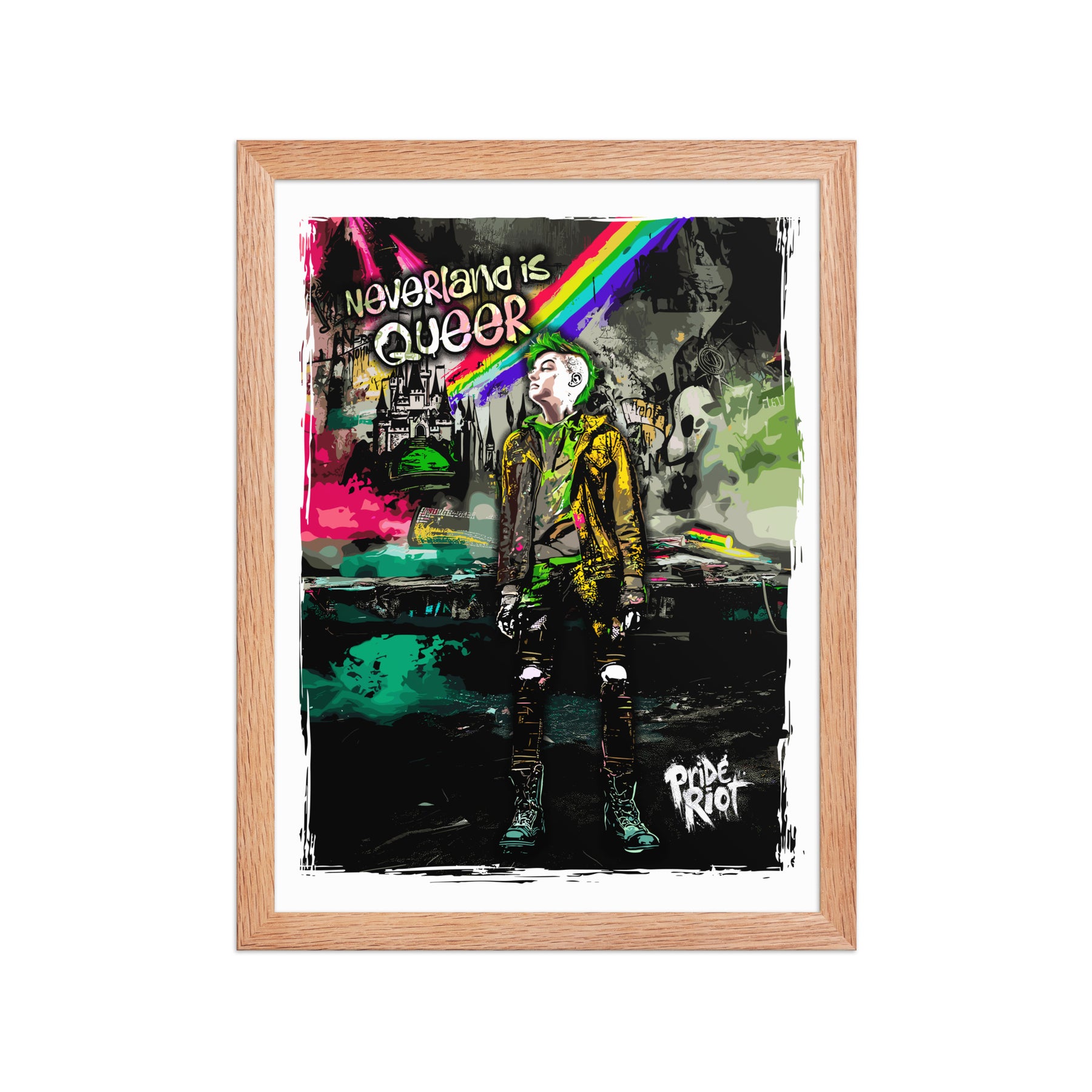 This museum-quality framed poster features our iconic Neverland rebel in all their queer glory. Printed on thick matte paper and housed in a sustainably sourced matte black wood frame, it’s the perfect blend of storybook fantasy and modern rebellion.
