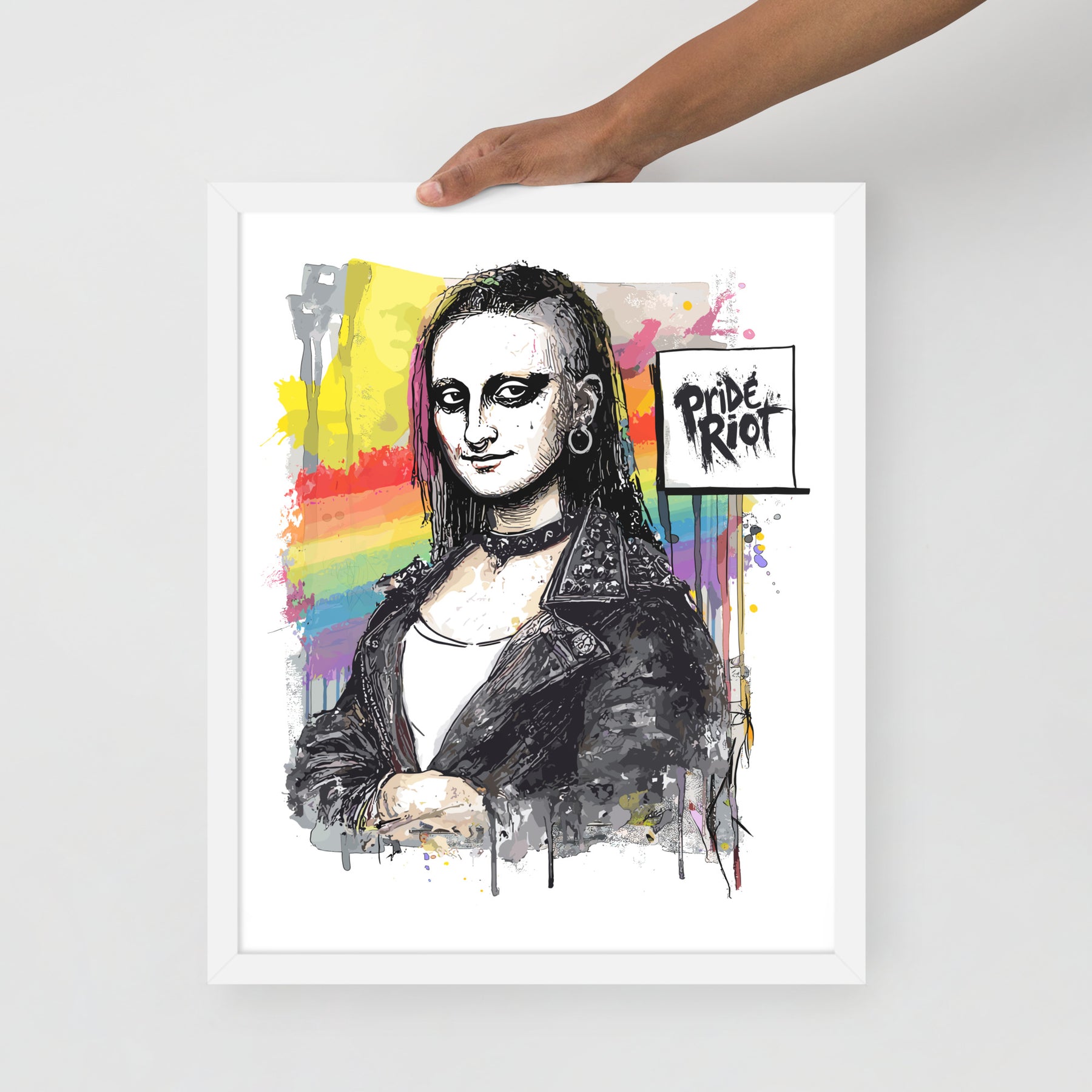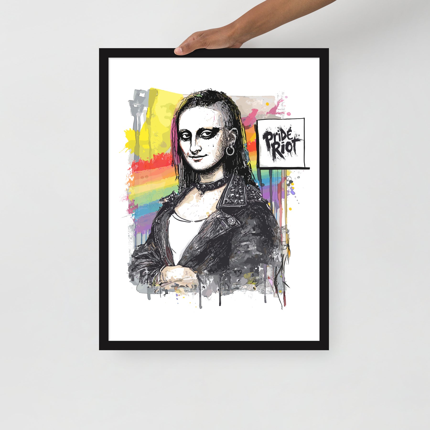 "The smirk that started a riot. Mona traded her frame for leather, rainbow graffiti, and punk grit — and now she’s back to take over your wall. This framed poster flips the world’s most famous portrait into queer rebellion, proving art has always been political.