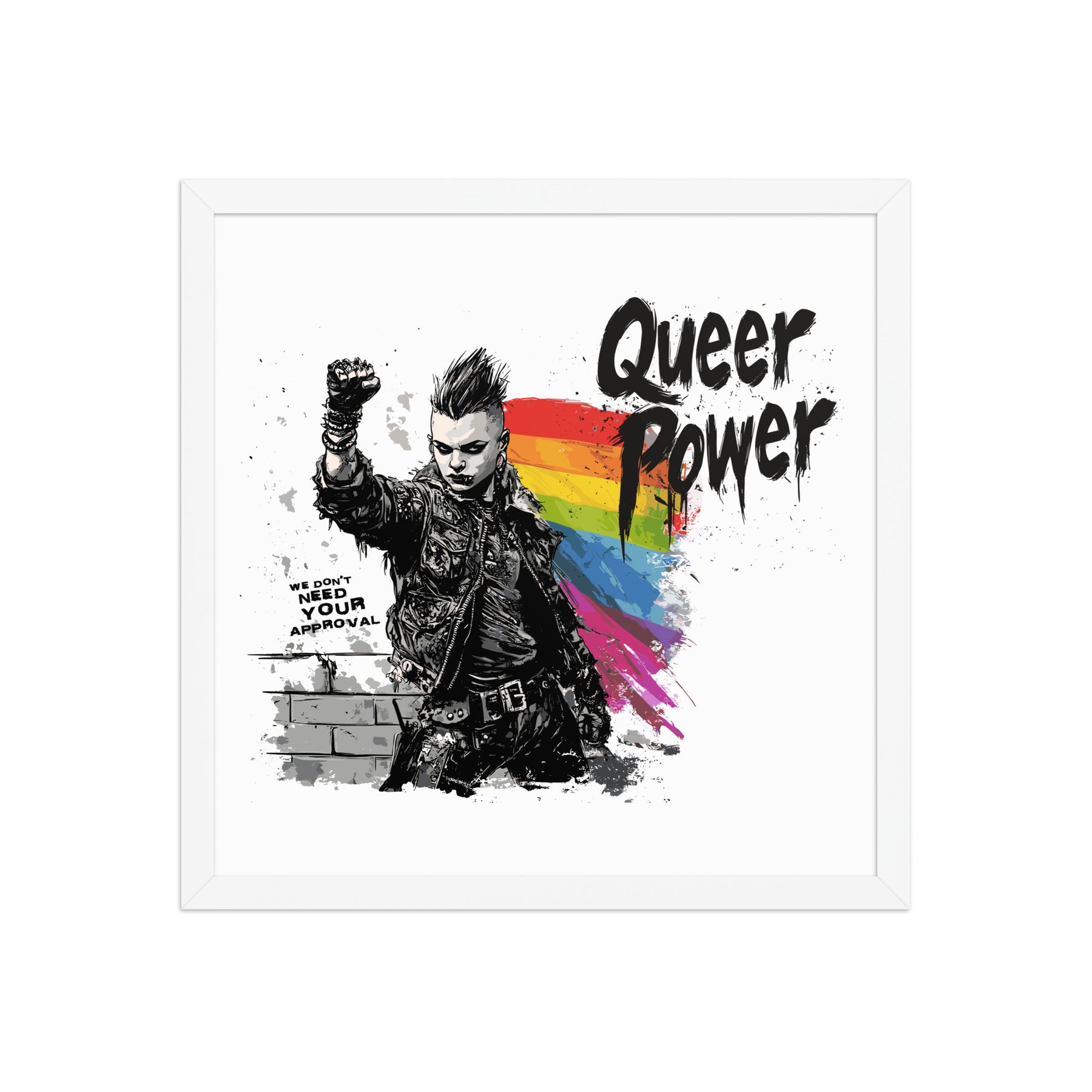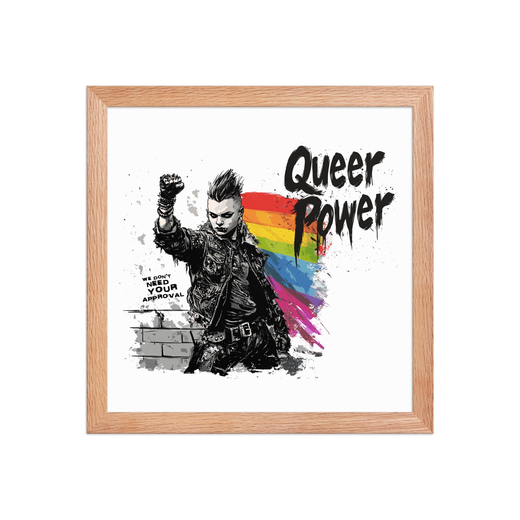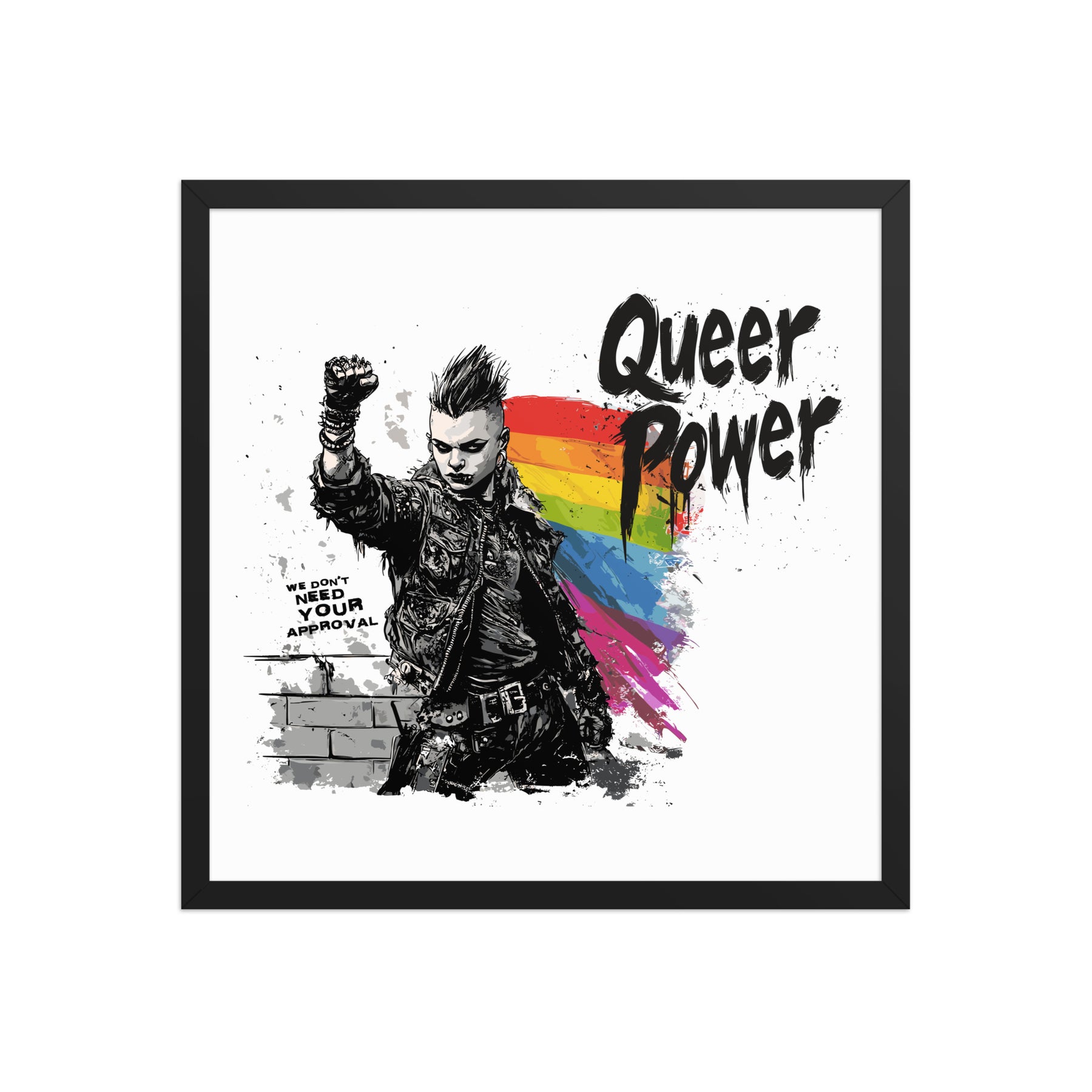Queer Power β Framed LGBTQ+ Punk Pride Wall Art for Home, Office, or Gallery (3 Sizes, 3 Frame Colors)